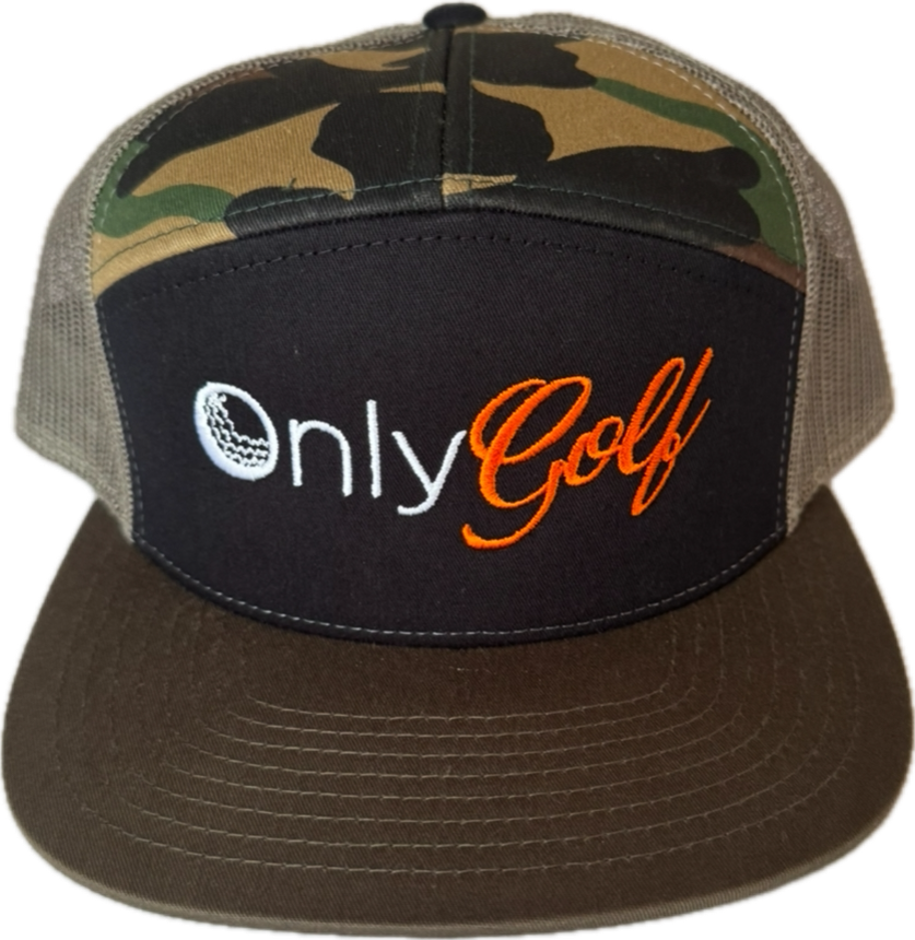 When you're playing like crap and you don't want to be seen, our OnlyGolf Camo/Black trucker will hide your disappointment. It's a Richardson 511 featuring a wool blend front with a nylon mesh back give this classic-looking cap some modern style. One size fits most.