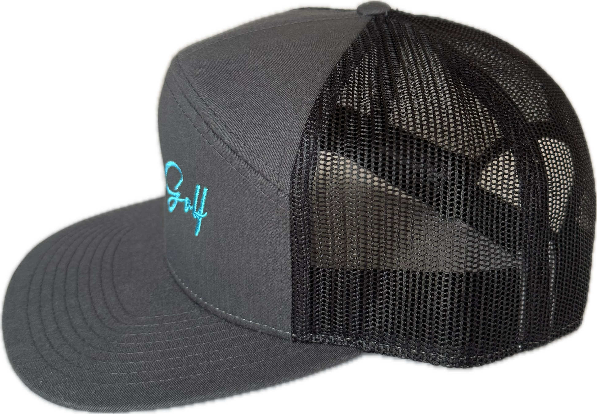 OnlyGolf turquoise script trucker in a Richardson 511 featuring a wool blend front with a nylon mesh back give this classic-looking cap some modern style. One size fits most.